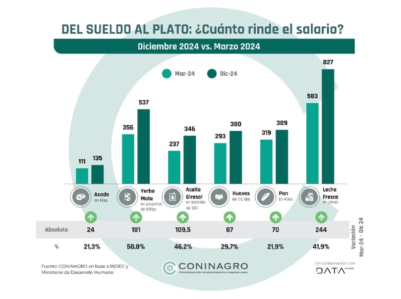 El informe de CONINAGRO detalla el incremento en el poder de compra del salario respecto a seis alimentos clave: