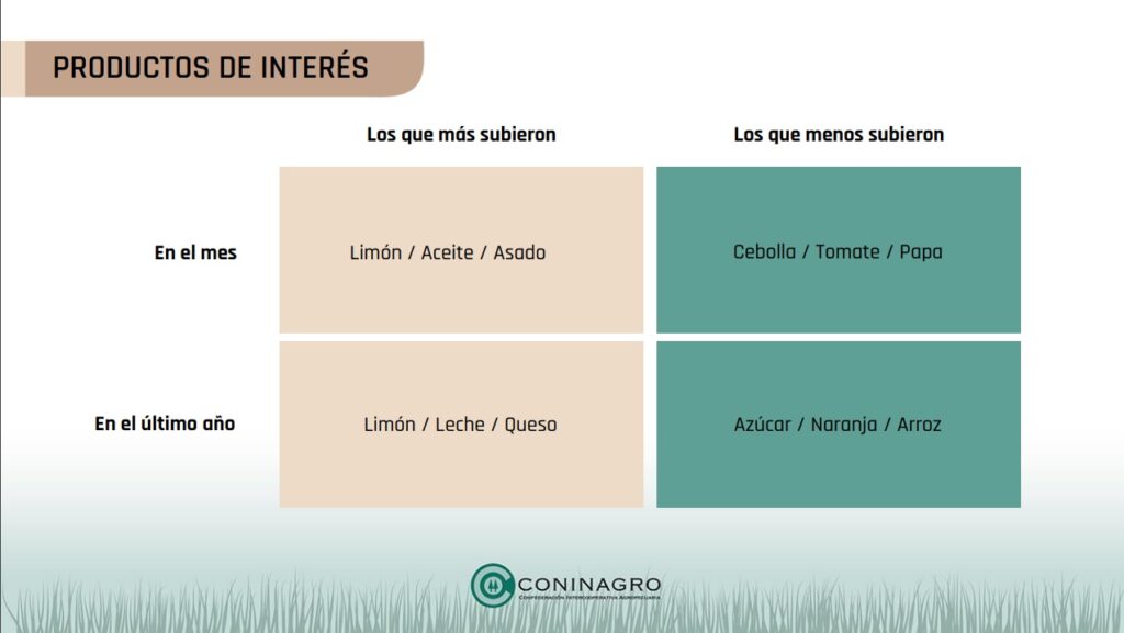 Entre los productos más afectados durante diciembre destacaron el limón, el aceite y el asado como los mayores incrementos. Por otro lado, productos como la cebolla, el tomate y la papa registraron menores variaciones. Al observar el panorama anual, el limón, la leche y el queso encabezaron las mayores subas, mientras que el azúcar, la naranja y el arroz fueron los más moderados en su crecimiento.