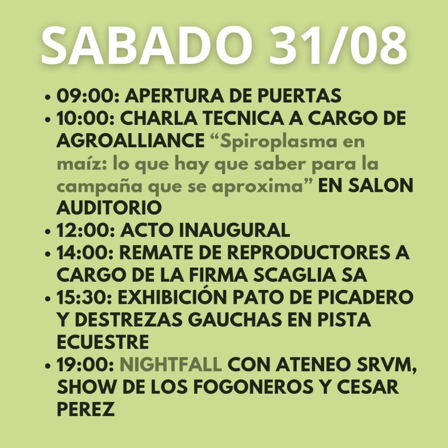 El sábado 31 de agosto se llevará a cabo el acto inaugural, seguido de un remate donde se subastarán bovinos, ovinos y equinos.