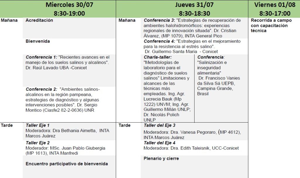 Como actividad satélite al congreso, en los días previos y organizado por la Universidad Nacional de Villa María se realizará un curso sobre salinidad.
