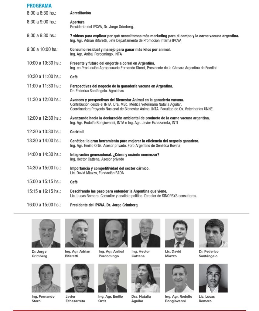 La apertura del encuentro estará a cargo de Jorge Grimberg, presidente del IPCVA, y las disertaciones previstas son las siguientes: